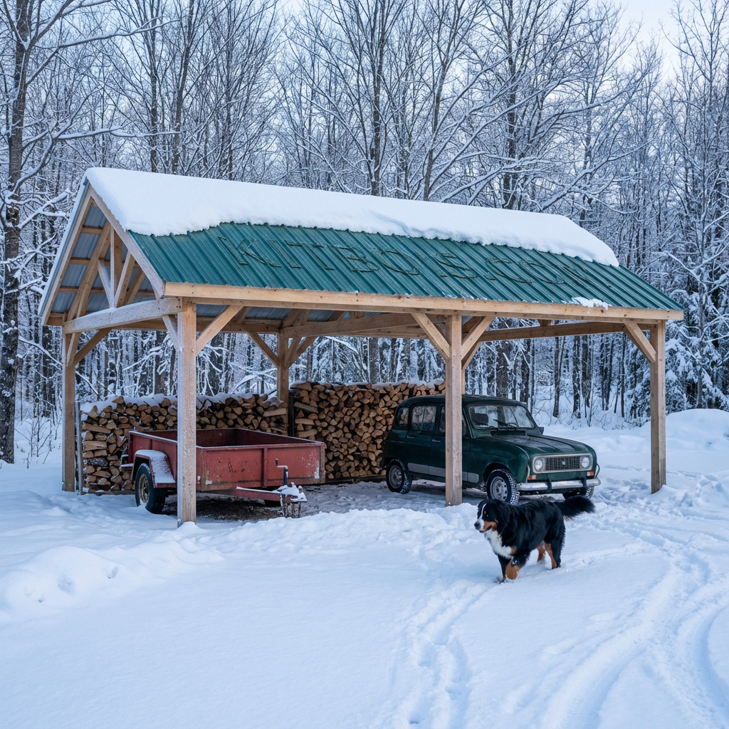 VISEU Hangar bois Ouvert / 2 pans 7.0 x 10.19m 25° de pente
