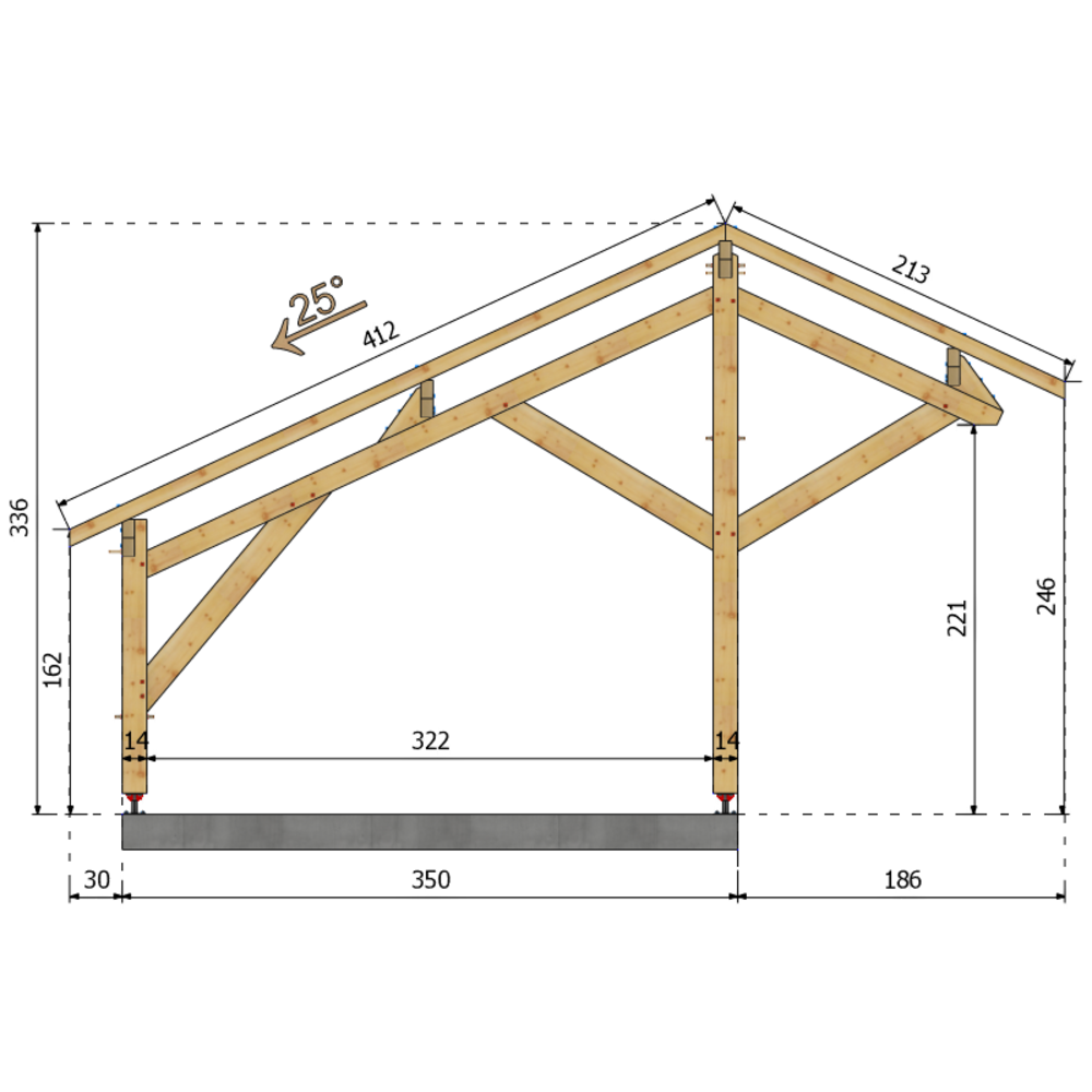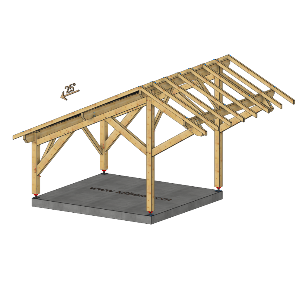 Pour couverture lourde TUILES TERRE CUITE ou BAC ACIER jusqu'à 800 m d'altitude, au-delà nous consulter. (couverture non incluse) Quincailleries et PIEDS DE POTEAUX REGLABLES INCLUS.