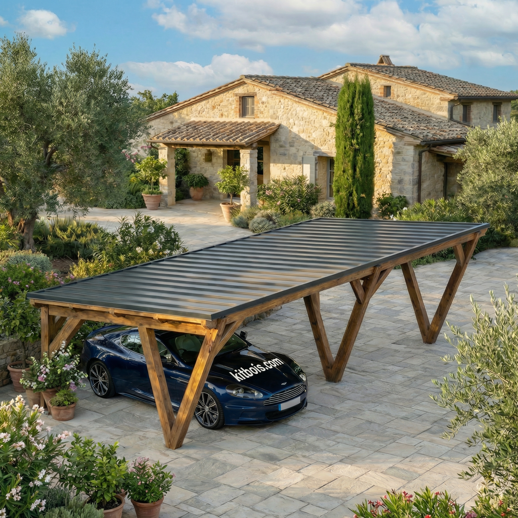 Ce modèle de auvent, adapté au bac acier, offre une bonne solution pour couvrir un véhicule.