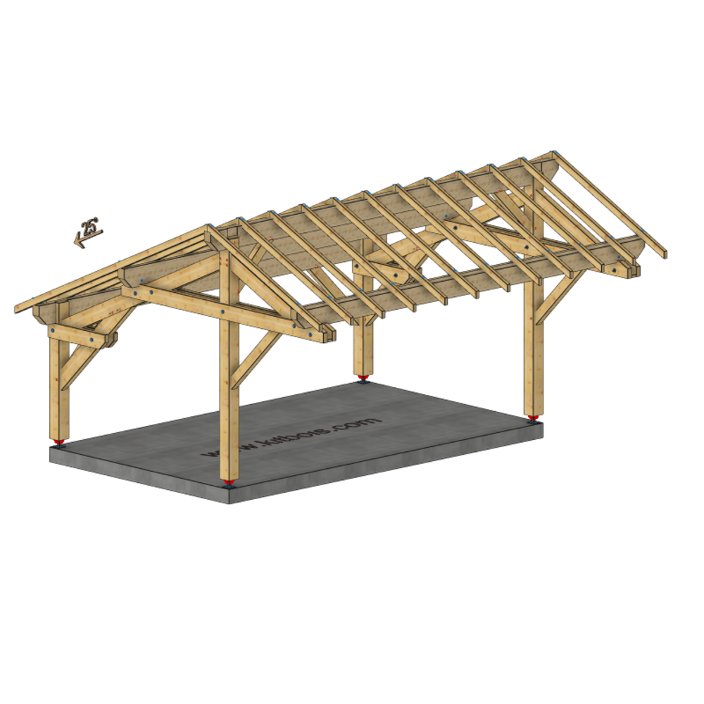 Pour couverture lourde TUILES TERRE CUITE ou BAC ACIER jusqu'à 800 m d'altitude, au-delà nous consulter. (couverture non incluse) Quincailleries et PIEDS DE POTEAUX REGLABLES INCLUS.