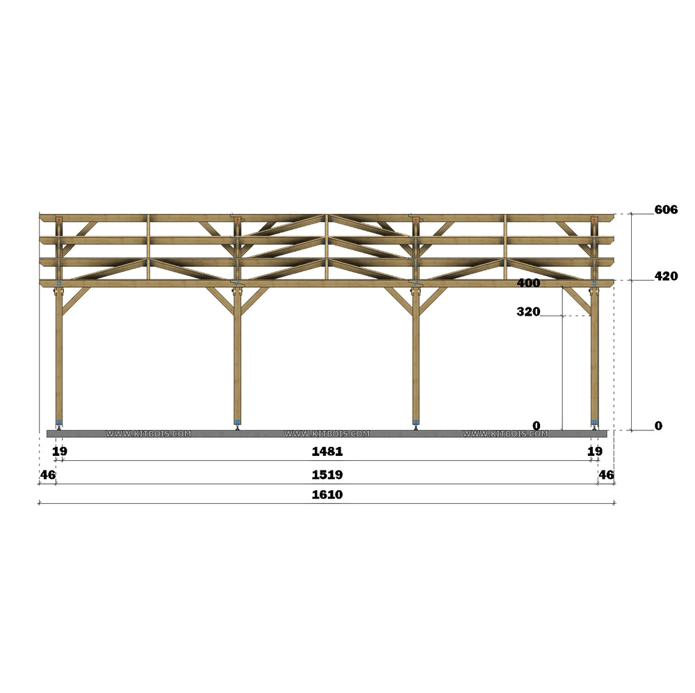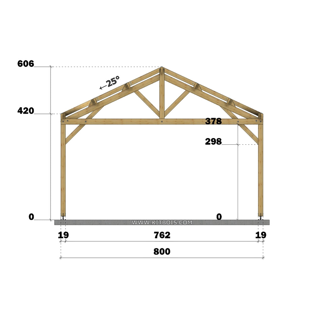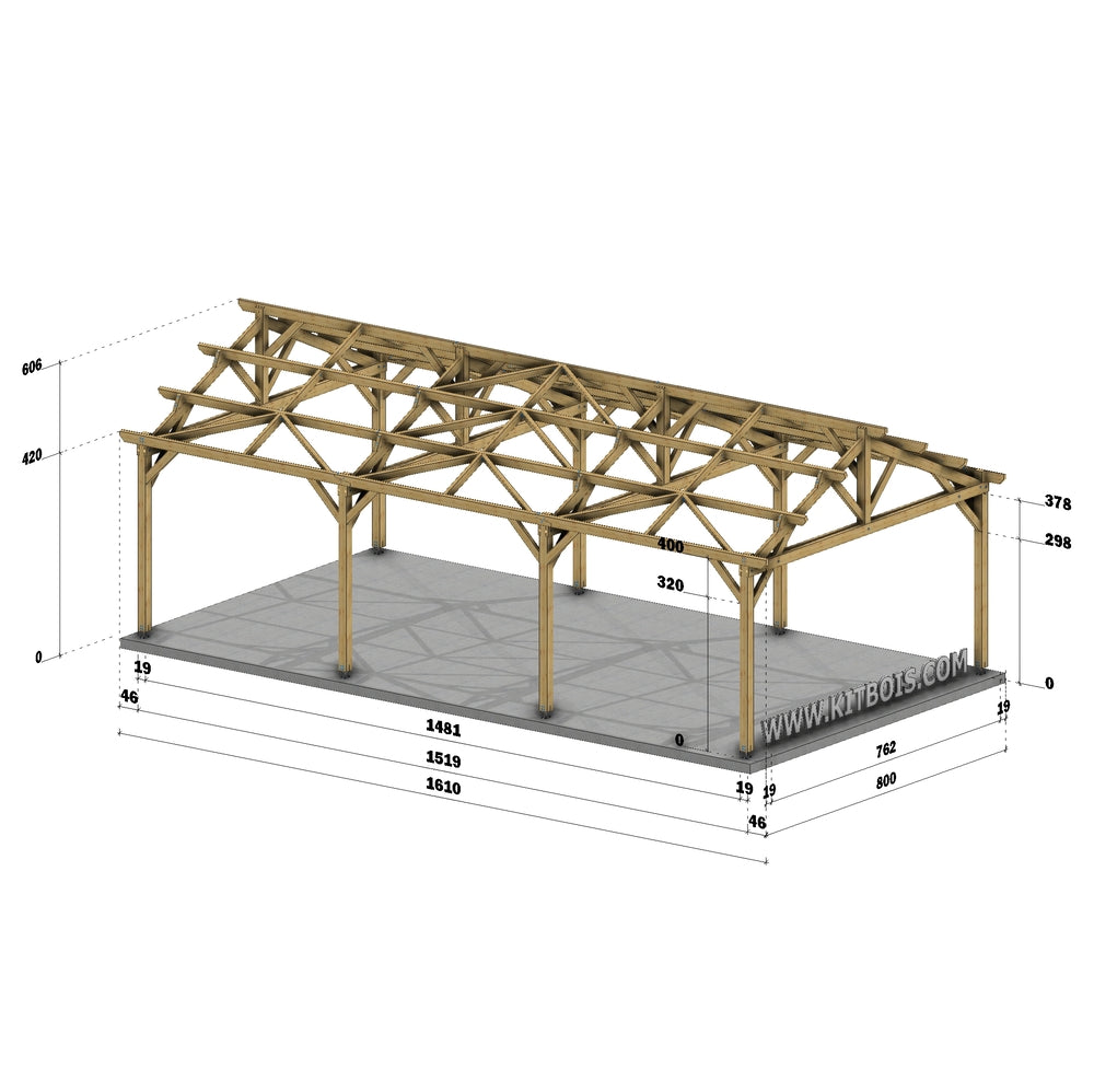 LISBOA Hangar bois Ouvert / 2 pans 8.0 x 15.19m 25° de pente