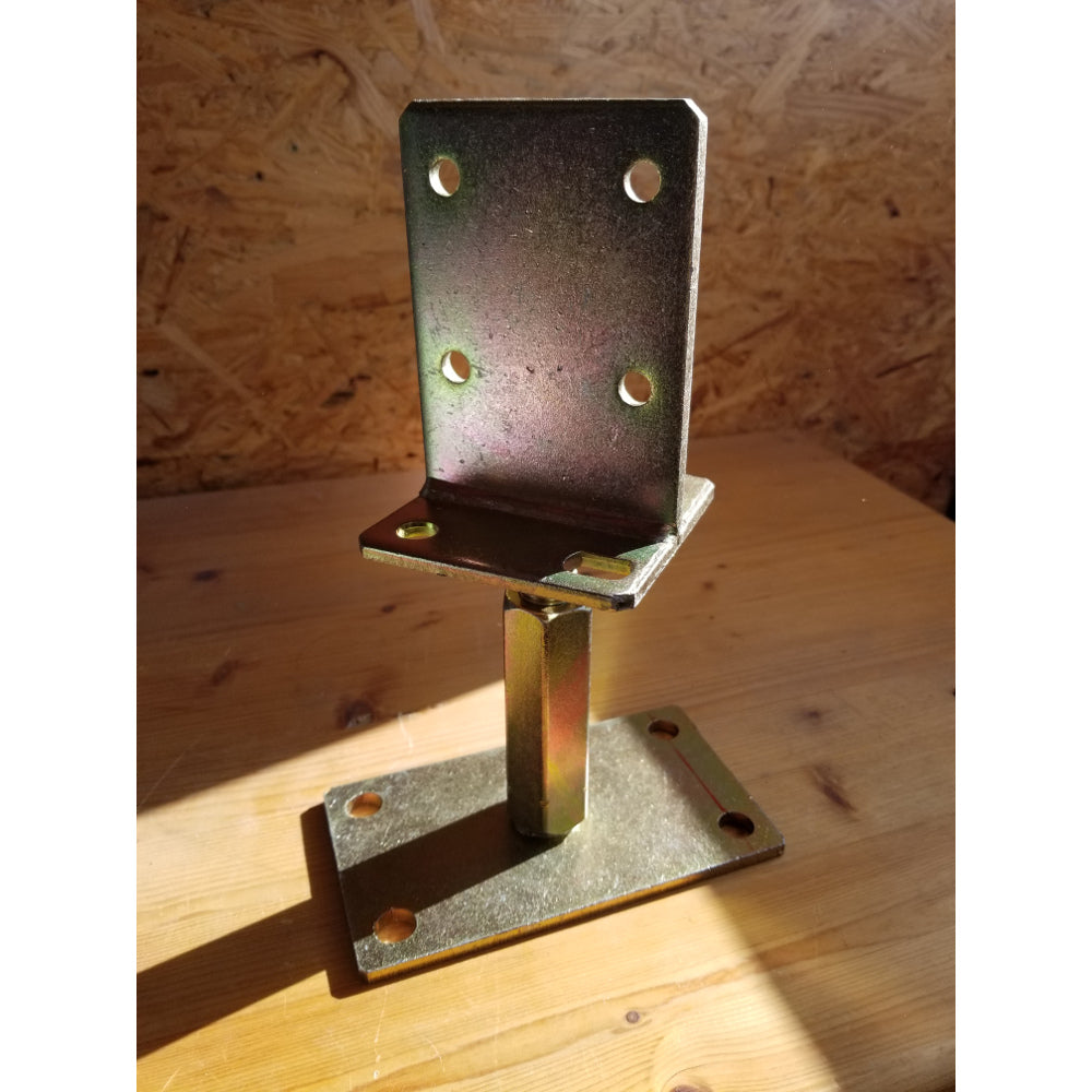 * Poteaux | sapin 19x19, 4 fermes sur 8 poteaux, 5 m entre fermes. Platines en âme réglables en hauteur.