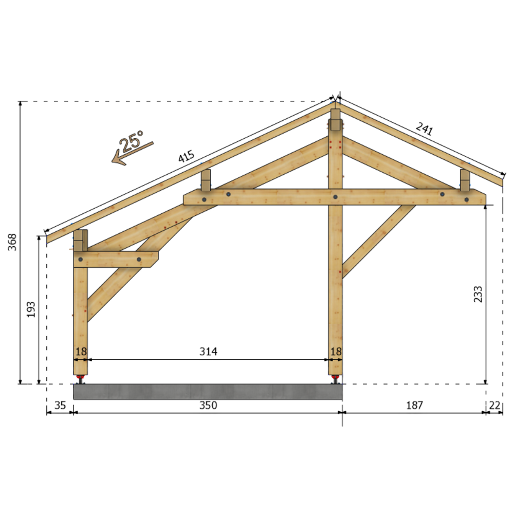 Pour couverture lourde TUILES TERRE CUITE ou BAC ACIER jusqu'à 800 m d'altitude, au-delà nous consulter. (couverture non incluse) Quincailleries et PIEDS DE POTEAUX REGLABLES INCLUS.