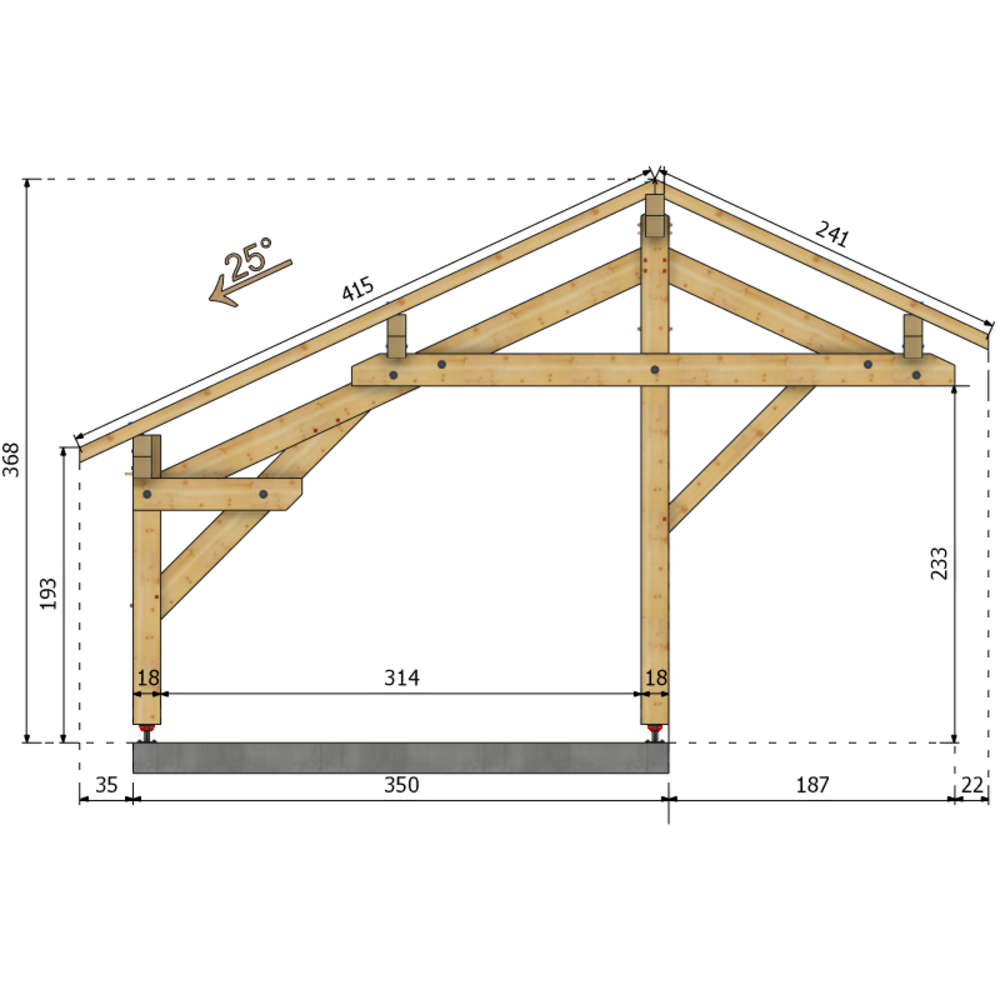Pour couverture lourde TUILES TERRE CUITE ou BAC ACIER jusqu'à 800 m d'altitude, au-delà nous consulter. (couverture non incluse) Quincailleries et PIEDS DE POTEAUX REGLABLES INCLUS.