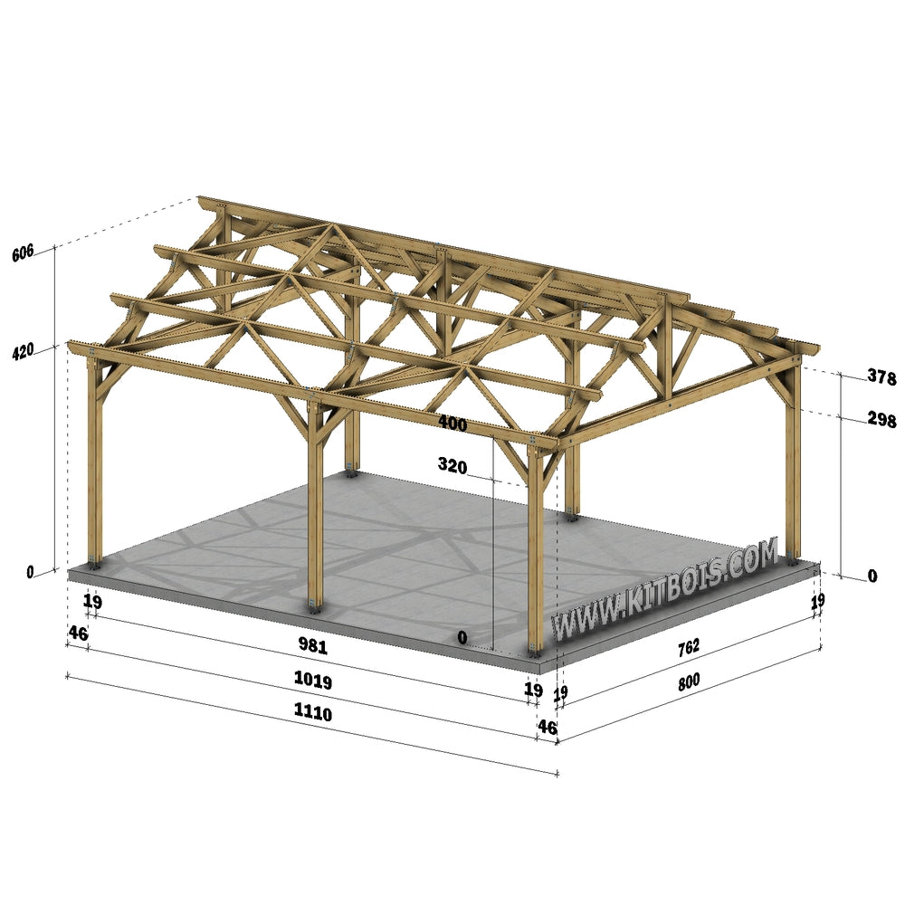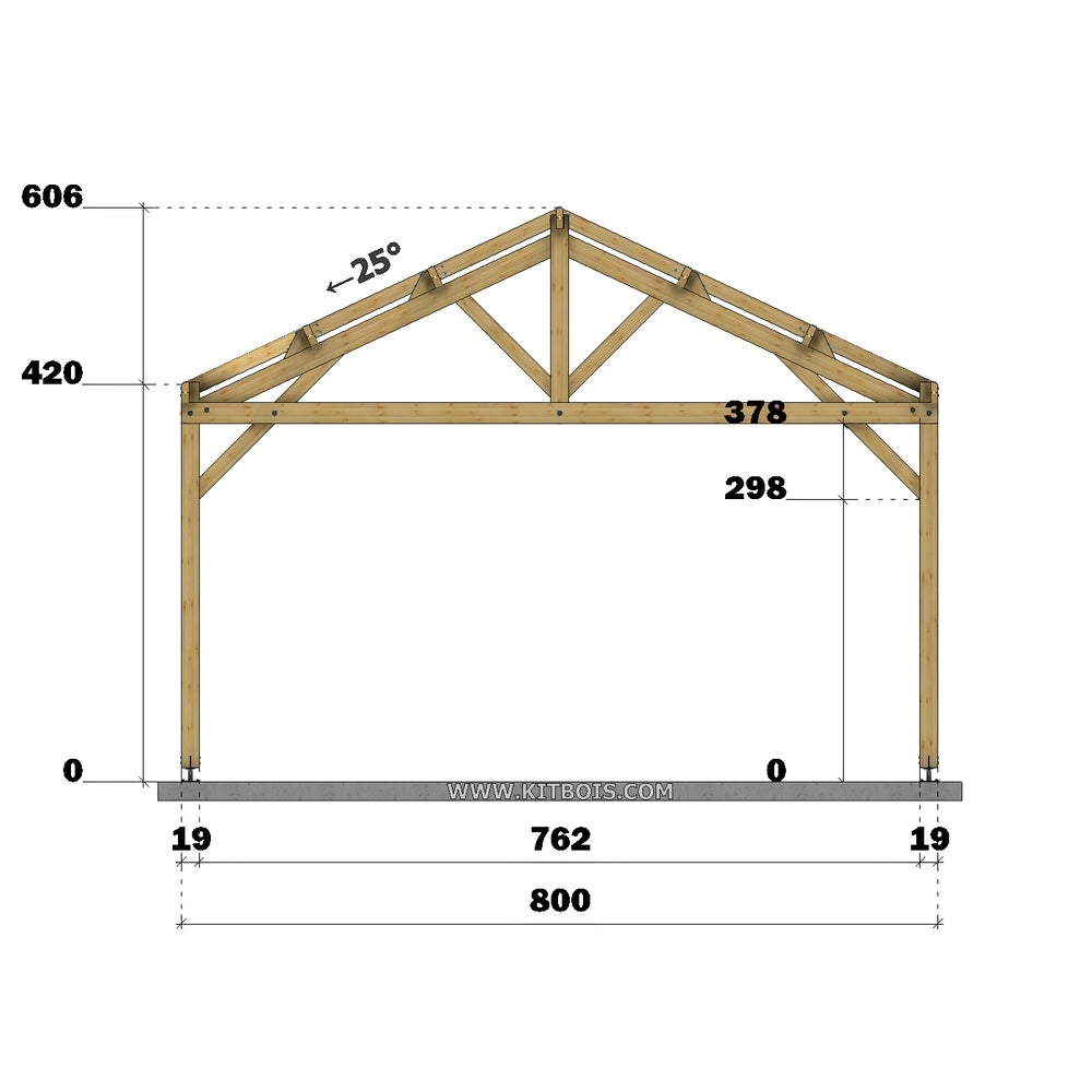 FARO Hangar bois Ouvert / 2 pans 8.0 x 10.19m 25° de pente