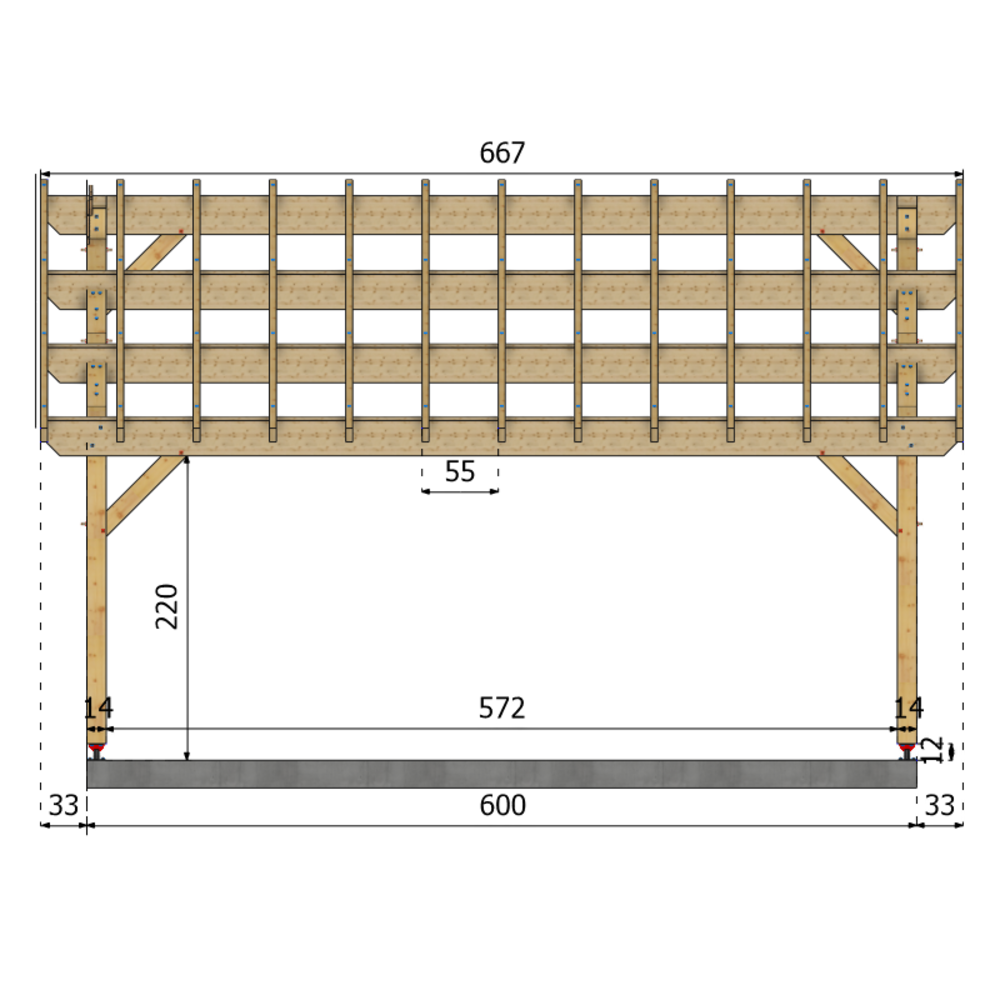 En option vous pouvez également commander ce auvent en douglas, bois rosé naturellement classe 3.
